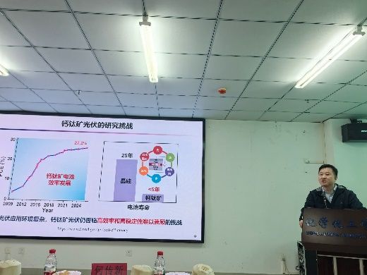 会议的第二部分由来自华中科技大学的李忠安教授、武汉理工大学的木士春教授和南京大学的胡征教授分别介绍了他们在钙钛矿光伏界面材料研发、水氧化反应机理和碳纳米笼创制及能源应用的研究进展。参会师生与各位专家进行了积极的互动交流。