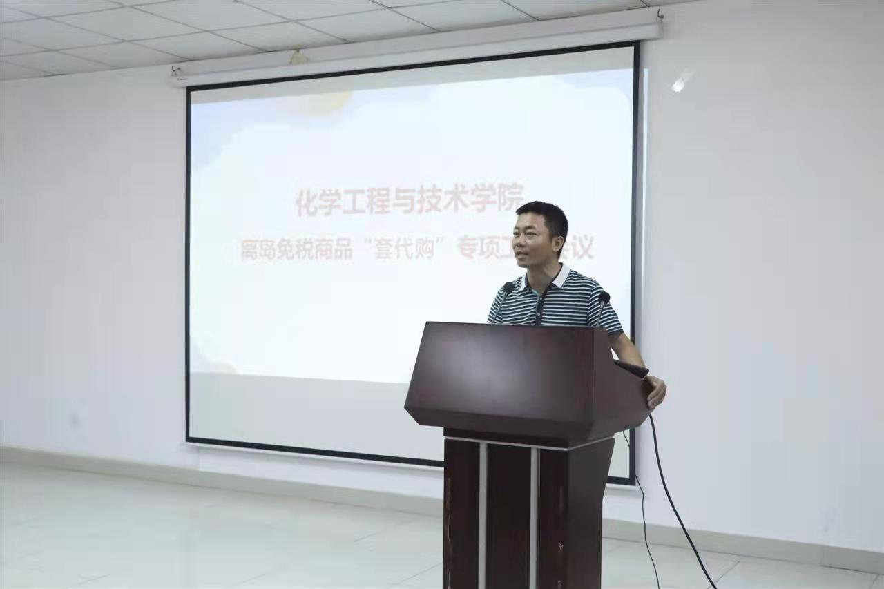 2021年7月13日,化学工程与技术学院下午3:30在研发楼710召开警惕和预防学生参与离岛免税“套代购”专项工作会议。参加会议的有学院党委副书记王林桂、学工办主任王克岩以及本科生和研究生各班留校班团支书、班委、学生党员。会议由王克岩老师主持。
