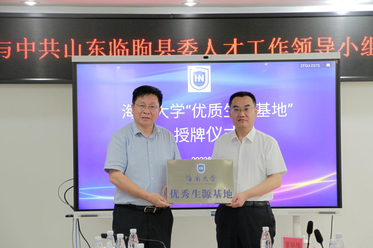 5月24日,中共山东临朐县委人才工作组一行由该县委常委、组织部部长潘锡才带队携人社局、教体局等及部分企业负责人来我校进行校地校企合作对接交流。临朐县委人才工作组一行首先参观了化学工程与技术学院的实验室、学校校史展览馆,然后在学校行政楼401会议室与我校进行了交流座谈。学校党委常委、副校长曹宪忠参加交流座谈。双方对前期已经开始的科研合作和成果转化的进展情况予以肯定,对研究生工作站建设情况进行了交流。曹献忠校长给临朐县授予“海南大学优秀生源基地”牌匾,欢迎更多的优秀临朐学子报考海南大学。学校科学技术发展研究院、研究生院、招生与就业处相关领导及化学工程与技术学院部分班子成员教师参加了交流座谈。对接交流会上双方就招生、学生实习实践、就业及产业研发等合作进行热烈的讨论。