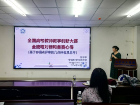 各位参赛老师从课程介绍、目标设定、痛点分析、创新举措以及成果反馈等方面做了系统而全面的汇报,学院三位评委对各位参赛作品进行了评价。比赛结束后马婕和朱平平老师分别从“运动员”和“裁判员”的角度分享了她们如何备赛以及关于比赛评分标准的宝贵经验,在场老师们都受益匪浅。