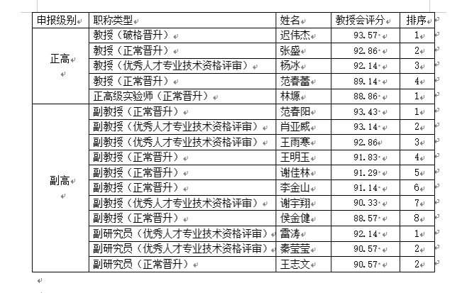 1.同意下列人员(按照排序)申报高级专业技术资格,并报学校。