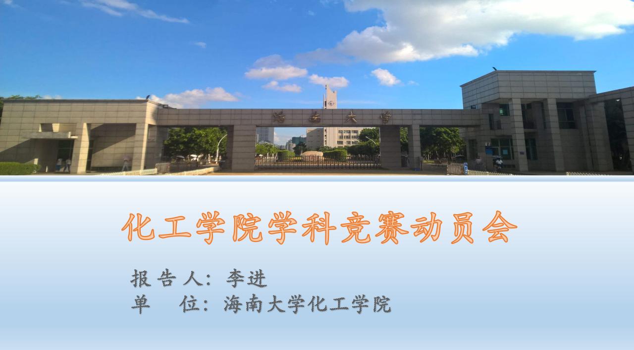 李进老师向同学们展示了海南大学历届学子在学科竞赛中取得的成果,分析了当前国家和省市在创新创业工作方面的形势和要求,对各类与化工学科相关的“挑战杯”、全国大学生节能减排大赛、全国大学生可再生能源科技竞赛等赛事文件进行解读,并强调了创新创业大赛的重要性和对学生自身发展所带来的帮助,号召同学们应结合各自特点进行相应的布局和项目策划,在学科竞赛中积极参与、主动作为、争创佳绩,充分彰显学院创新创业教育成效。