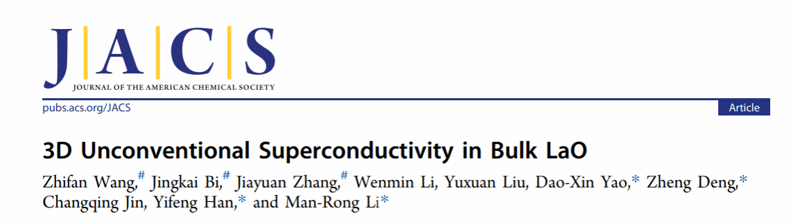 李满荣团队与中国科学院物理研究所、中山大学、河南省科学院等单位的合作者,通过高压高温合成技术成功获得了块体LaO,并系统研究了其超导特性。相关研究成果以“3D Unconventional Superconductivity in Bulk LaO”为题发表在国际顶级化学期刊《Journal of the American Chemical Society》上。海南大学硕士研究生王志帆、中山大学博士张嘉媛和河南省科学院毕敬凯为论文共同第一作者,通讯作者为海南大学李满荣教授、韩艺丰副研究员,以及中山大学姚道新教授、中国科学院物理研究所邓正研究员。