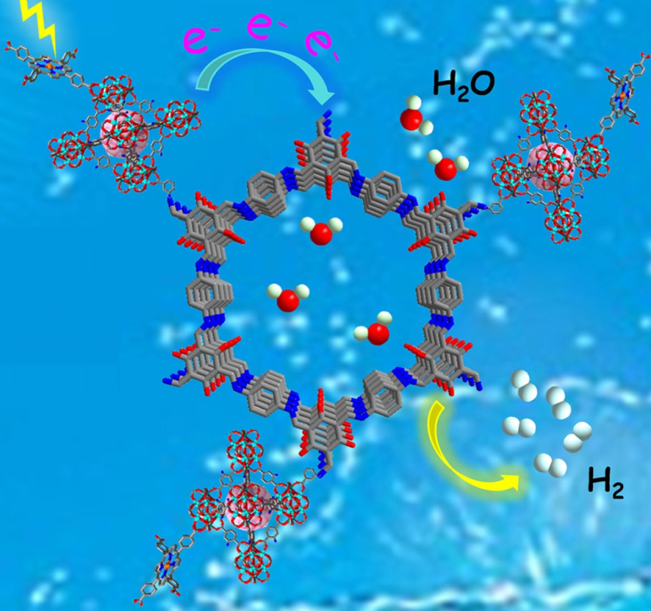 Angewandte Chemie International Edition杂志以封面文章出版了该论文,该研究介绍了稳定钛基-金属有机框架材料(Ti-MOF/COF)的功能化构筑,将具有优异可见光响应能力的卟啉基天线分子通过共价键引入到高孔隙率、大比表面积、孔道规则可调的三维立体化的功能超分子体系中,该体系在人工光合作用方面表现出优异光催化分解水制氢性能,通过理论模拟和多角度结构性能表征揭示人工光转化体系的构效关系,为功能化设计可剪切可调控的稳定光响应器件并拓展其在太阳光转化方面的应用提供思路和借鉴。