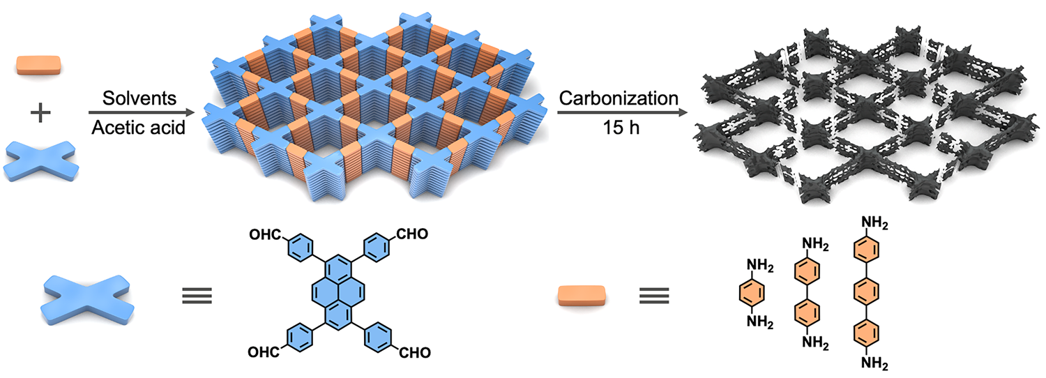图1.共价有机框架衍生多孔有机材料的合成示意图。