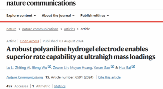 环境/能源材料先进制造与应用创新团队与厦门大学白华教授合作,在《Nature Communications》上发表题为《A robust polyaniline hydrogel electrode enables superior rate capability at ultrahigh mass loadings》的研究论文。米博体育