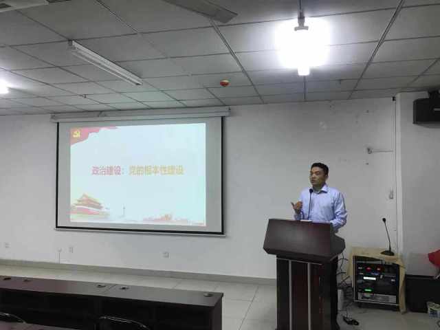 2019年10月29日下午,化学工程与技术学院学生党支部书记王克岩在研发楼710会议室以“政治建设:党的根本建设”为题讲党课。党课旨在加强支部“三会一课”制度建设,提高党员的政治素养,学院全体党员、预备党员、积极分子参加了此次党课学习。
