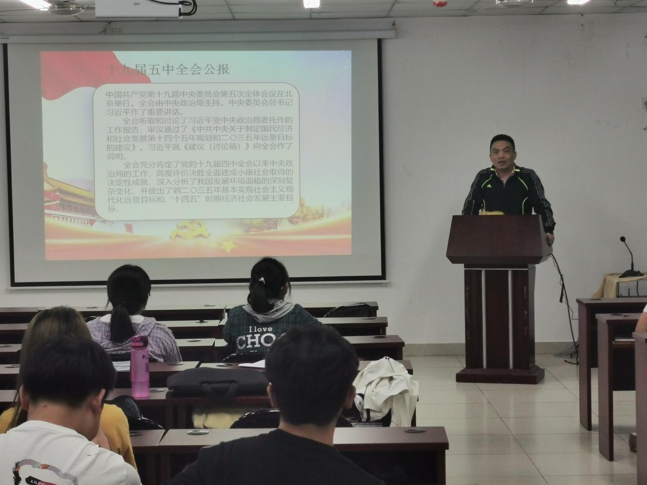 本次支部学习会由党支部书记王克岩老师主持。会上,王克岩老师带领党支部全体成员认真学习十九届五中全会全文公告,重点介绍“十四五”规划主要目标、重点任务和2035年基本实现社会主义现代化的国家发展战略目标内容。